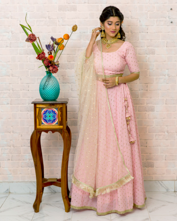 Send Enquiry for Baby Pink And Off White Embroidered Lehenga Set