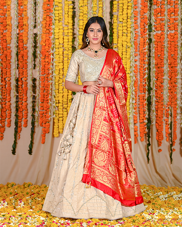 Home Partywear Lehengas Beige Embroidered Lehenga